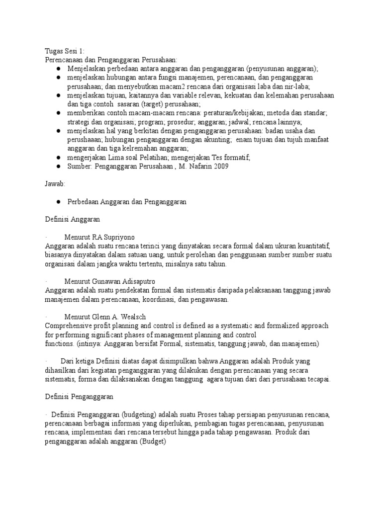 Budgeting dan forecasting merupakan 2 fungsi keuangan paling penting untuk bisnis dalam ukuran berapa pun. Perbedaan anggaran dan penganggaran oleh calon manejer mei 14, 2019 posting komentar dalam pengelolaan perusahaan, manajemen menetapkan tujuan (goals) dan sasaran ( objektives) dan kemudian membuat rencana kegiatan untuk mencapai tujuan dan sasaran tersebut. Hasilnya pemilik usaha akan dapat dengan baik dan terukur menentukan arah pengembangan usaha. Budgeting sesungguhnya tidaklah sulit untuk dilakukan, sleekr telah merangkum beberapa tips dalam melakukan budgeting. Sebut dan jelaskan fungsi anggaran dalam perusahaan!